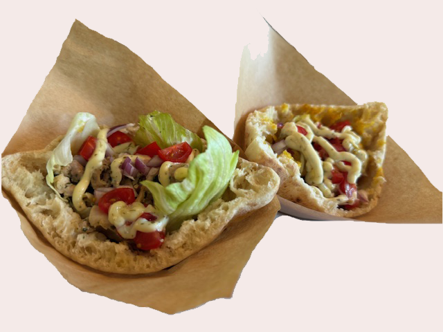 Naan broodje met ijsberg, snoeptomaatjes en rode ui
