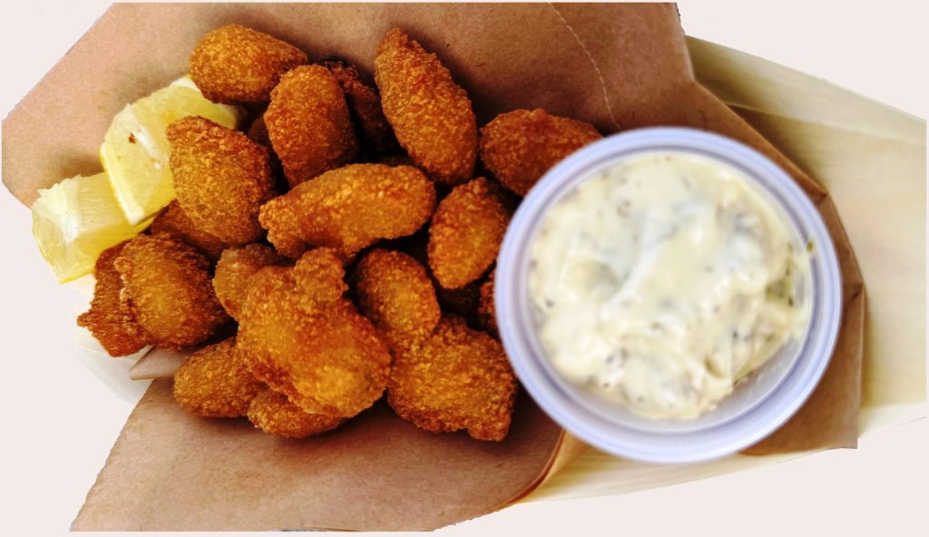 Gepaneerde torpedoschrimps met huisbereide tartaar